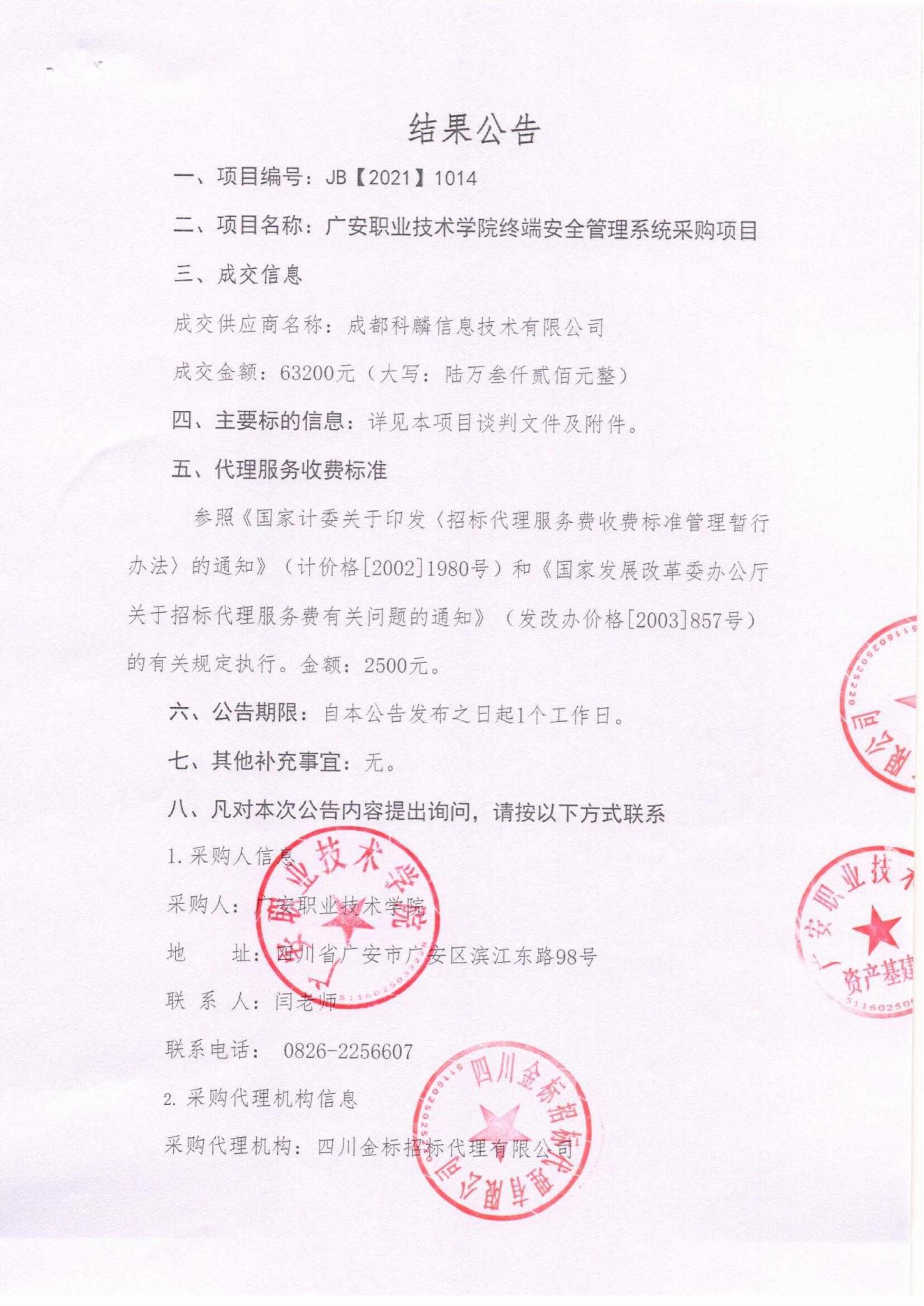 终端安全管理系统成交公告