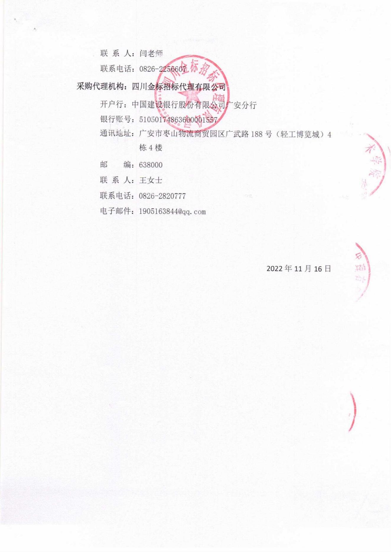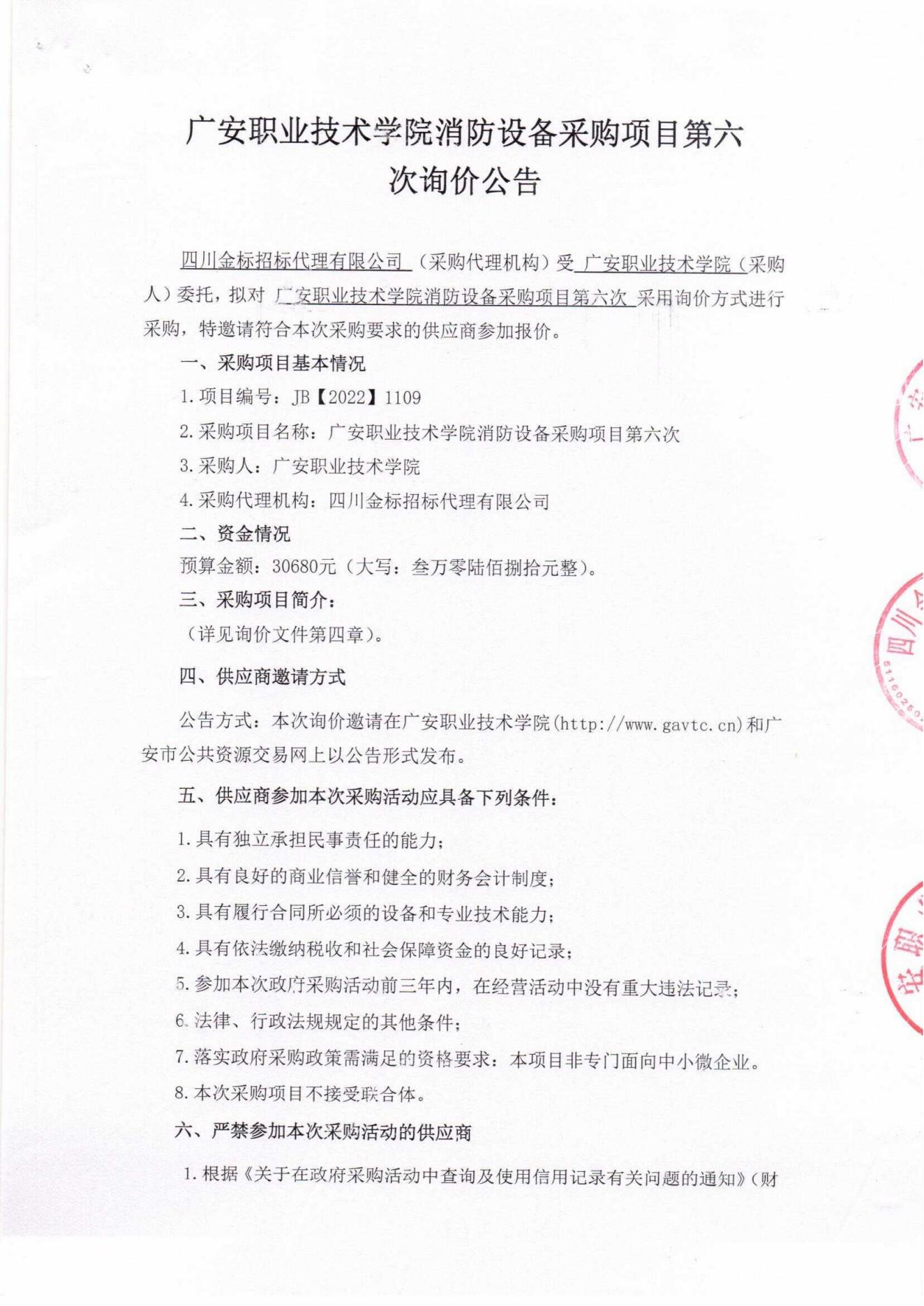 广安职业技术学院消防设备采购项目第六次询价邀请公告