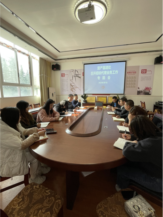 2022年3月1日,资产基建处在稻香园202会议室召开招标代理业务工作会,会议由资产基建处处长李海明主持,资产基建处全体人员、学校委托的招标代理公司四川金标招标代理有限公司负责人及相关人员参加会议。